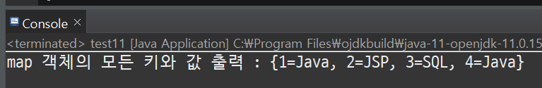 System.out.println("map 객체의 모든 키와 값 출력 : " + map);